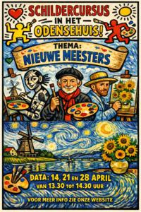 In 3 weken gaat u onder leiding van Marion Zwart met acrylverf schilderen in de stijl van Andy Warholl (pop art), Piet Mondriaan (kubisme) en Vincent van Gogh (Post impressionisme)